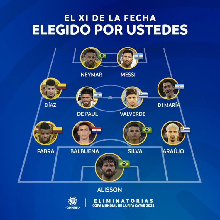 南美世预赛第17轮最佳阵:梅西、内马尔、迪马利亚、弟媳在列